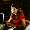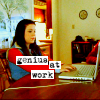 Description: Mac from Veronica Mars typing away as usual (FTW!), with the words "genius at work" in Courier font.