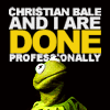 Description: Text: "Christian Bale and I are done professionally," in front of Kermit. Reference to Bale's outburst and Kermit Bale.