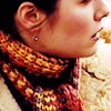 Description: Close-up of Jaye from Wonderfalls, in her red and gold autumn scarf.