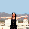Description: Ninja!Kahlan from Legend of the Seeker, over a sky blue background.